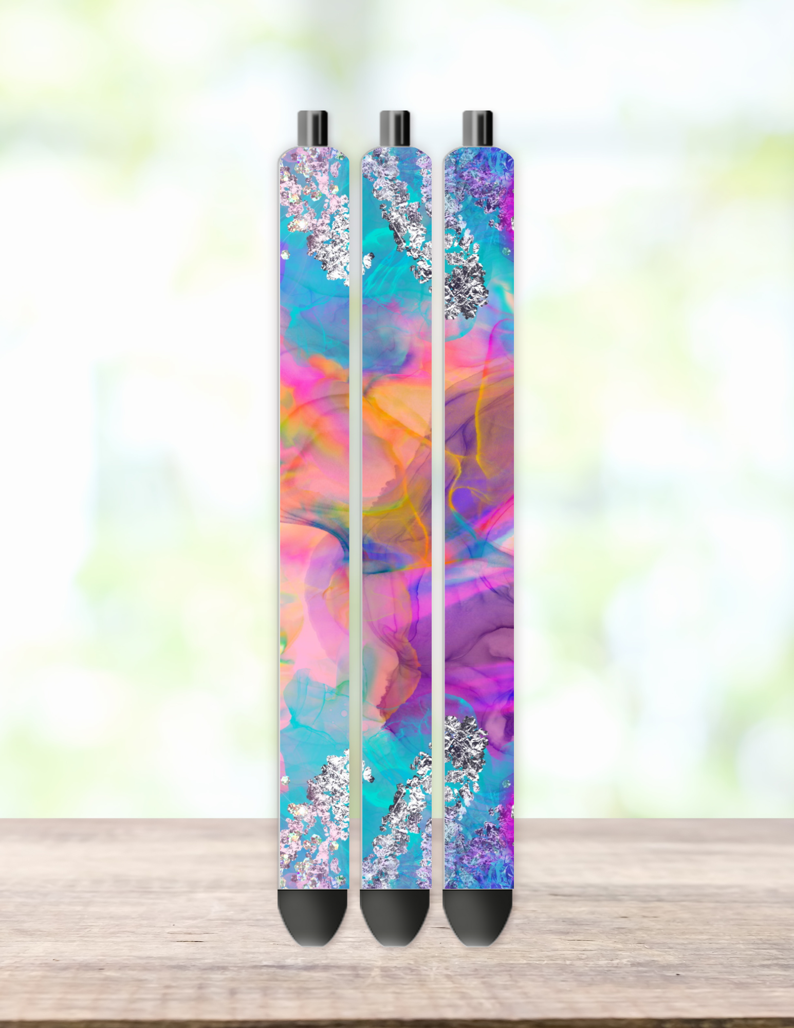 All pens have been wrapped with a vinyl image and have a final coat of epoxy for a smooth shiny finish with black ink!